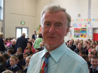 Musician and soon-to-retire school teacher Paddy McLaughlin during the official opening of the new Scoil Eoghain National School in Moville.