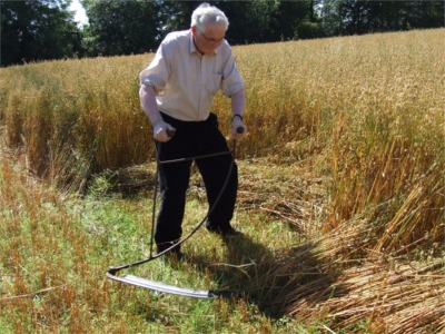 Bertie Faulkner, aged 76, Ringsend, Garvagh, Co Derry, uses a 100-year old scythe made by a blacksmith, at the vintage corn-cutting day at Poundtown, Greencastle, on Sunday. The event was organised by the Inishowen Vintage Agricultural Show committee.