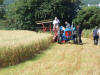 Bertie Faulkner, aged 76, Ringsend, Garvagh, Co Derry, uses a 100-year old scythe made by a blacksmith, at the vintage corn-cutting day at Poundtown, Greencastle, on Sunday. The event was organised by the Inishowen Vintage Agricultural Show committee. Harvest time: using traditional methods to cut the corn during the vintage day in Greencastle. Carrowmenagh local historian Sean Beattie brings his camera for some shots of the vintage harvesting. Bertie Faulkner, Garvagh, sharpens his 100-year old scythe before cutting some sheaves of corn at Pound Street. Annie Bonner, Ballymacarthur, ties some corn sheaves during the vintage day on Sunday in a scorching Greencastle.