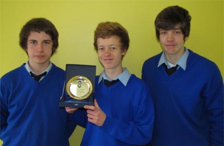 Students from Scoil Mhuire, Buncrana, Steve Sheridan, Henry Bowles and Robert McGilloway who won third prize for innovation at the ‘National Get Up And Go’ Awards in The Ospreys Hotel, Kildare.