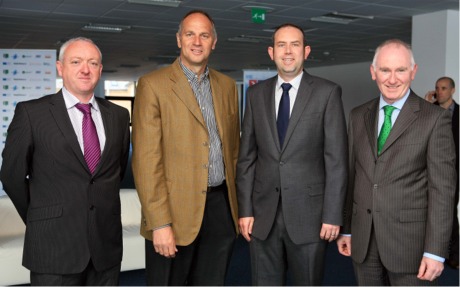 Sir Steve Redgrave with members of the Londonderry Port and Harbour Commission. Included, from left, are harbour master Bill McCann, from Shroove, port engineer, George Cuthbert and chief executive, Brian McGrath. (Photo: Lorcan Doherty)