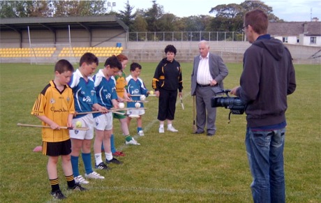 Jerome Quinn shoots some fledgling hurling skills in Malin.