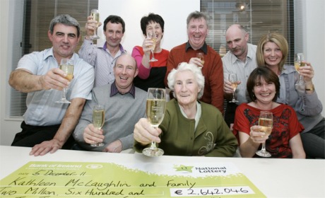 A Lotto spokesperson said Kathleen her husband Robbie and their daughters and sons are members of a family syndicate. "They take it in turns to purchase their Lotto ticket. Last Friday, it was Kathleen’s turn and she purchased the €4 Quickpick ticket which resulted in the jackpot heading to Donegal for Christmas 2011."