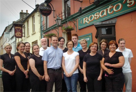 Teamwork: Eddie and Margaret Harkin, centre, pictured with some of the staff at Rosato's which is celebrating being named top pub for 2010 by the Sunday World's Pub Spy.