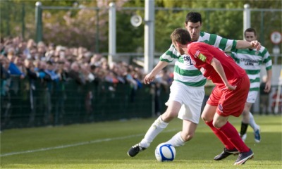 Cockhill Celtic...0 Sligo Rovers...4 (Ndo, Doyle, Cretaro, Horgan) Caoimhinn Barr reports from Maginn Park (Photo: Evan Logan) COCKHILL Celtic were brought crashing back to earth at Maginn Park on Monday night when Sligo Rovers crushed their League Cup hopes with a comfortable 4-0 victory. An early goal by Joseph Ndo added to second-half strikes by Eoin Doyle, Raffaele Cretaro and Daryl Horgan ensured safe passage into the quarter-finals for Paul Cook’s men, who outclassed their Inishowen opponents throughout. Never really in the game and behind within fifteen minutes, Cockhill had a number of admirable performers, including William O’Connor, William McLaughlin and Malachy McDermott, but were left chasing possession against a slick Sligo outfit which kept the ball for fun. With veteran Joseph Ndo and John Russell pulling the strings in midfield, full-strength Sligo Rovers launched wave after wave of attack and could have won by a much wider margin had they been more clincial in front of goal. Second-half goalscorer Doyle missed three clear first-half chances while Alan Kane and Cretaro both struck the crossbar with fine efforts. |