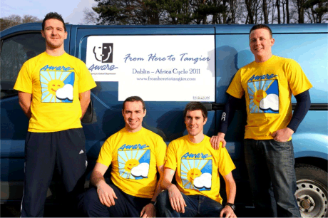 Johnny and Joe Doherty will join Garda friends, Ian Finlay and Andy Gillespie, as well as Lorcan Fields, an AIB bank employee, for the gruelling three-week cycle from Dublin to Tangier, Morocco. All money raised will go to Aware, Defeat Depression.