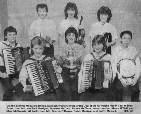 Among the many successes are Craobh Seamus Mac Giolla Bhride Grupai Cheoil 1985, 1988 and 1989 under the direction of Teresa McClure.