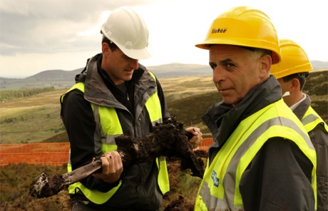 Historian and TV presenter Dan Snow examines one of the Browning machine guns excavated along with a WWII Spitfire from Glenshinney bog, Inishowen, last summer.