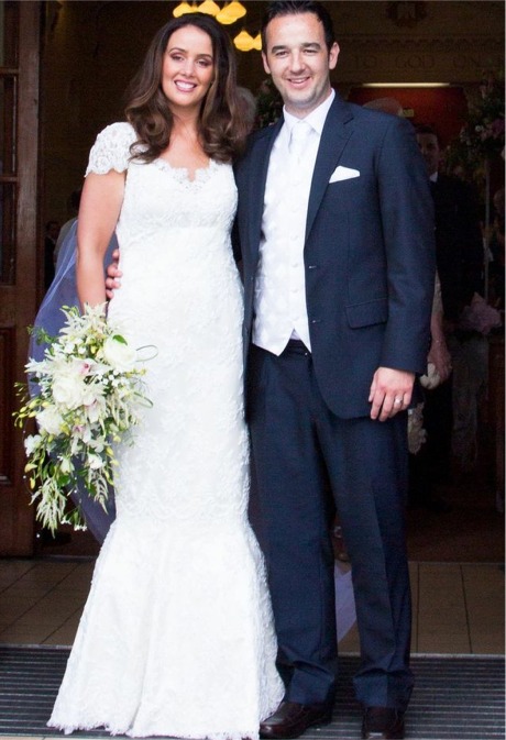 The elegant bride joked that she had contemplated getting wed in one of her competition's award-winning rubbishy dresses. But she opted instead for a beautiful bespoke gown designed by Jen Kelly.