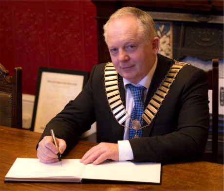 Mayor of Buncrana, Cllr Peter McLaughlin, signs a book of condolence for the late Nelson Mandela.