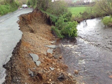 "The damage to the road is of a very serious nature with flooding in the adjacent river tearing away the road and leaving a sheer embankment with a 30-foot drop to the river bank," said Deputy McConalogue.