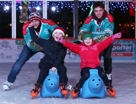 ICE skating 'giants' Andrew Dickson and Mark Garside showed the amateurs how it's done when they dropped in to the winter rink at Derry's Ebrington Square.