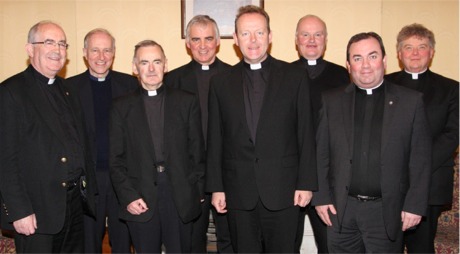 The then Monsignor Eamon Martin at his election as Derry Diocese administrator back in 2011 with, from left, Mgr Joseph Donnelly, Mgr Bryan McCanny, Fr Patrick McGoldrick, Fr Michael Canny, Mgr Eamon Martin (Diocesan Administrator), Fr John Farren, Fr Francis Bradley and Fr John Cargan.