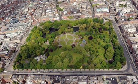 AT a glance it could be New York's Central Park but notice the lack of skyscrapers and surrounding Georgian red-bricks and you'll see that it's actually a breathtaking view of St Stephen's Green in Dublin.