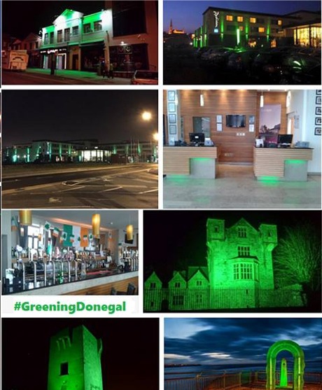 Some of the Donegal locations that went green as part of the nationwide St Patrick's Day tourism initiative.