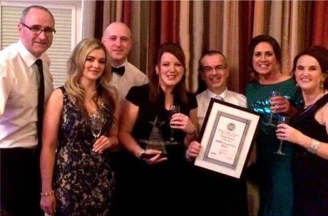MLMG Financial Brokers who were named Start-Up Business of the Year 2015 at the recent inaugural Buncrana Chamber of Commerce Business Awards at the Inishowen Gateway Hotel. Pictured from left are partner Philip McGonigle; Adele McCurdy; Declan O’Donnell; Joanne Enright; partner Cathal McLaughlin; Rosemary Kitson and Sharon Cassidy.