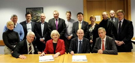 Standing from left to right are: Una Cardin, Western Trust; Gerry McBrearty, Western Trust; Derek Loughery, CPD Health Projects; Paul Taylor, Taylor and Boyd; Harry Thompson, CPD Health Projects; Kevin Jackson, O’Connell Mahon Architects; Ed McNaught, RPS; Margaret McIvor, Western Trust; Jimmy Hickey, O’Connell Mahon Architects; Irwin Potts, Western Trust and James Henderson, Bruce Shaw.