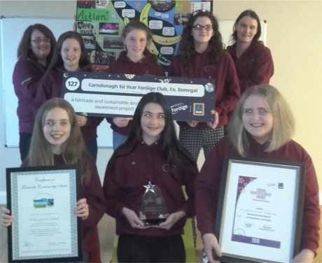 CARNDONAGH Foróige Club has become the first in the country to receive Fairtrade status.