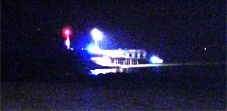 Buncrana Pier lit up last night during the major recovery operation.