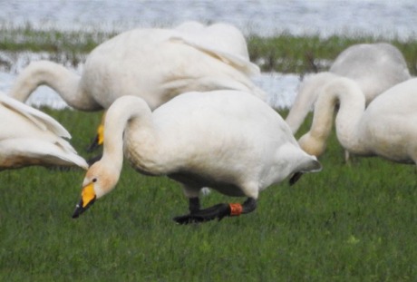 A female whooper swan photographed by Wild Inishowen club members at Inch Wildfowl Reserve over Christmas. She had been ringed in Iceland in the summer of 2014.