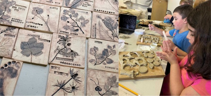 Tiles for the ceramic trail produced by community and workshop with Aileen Barr.