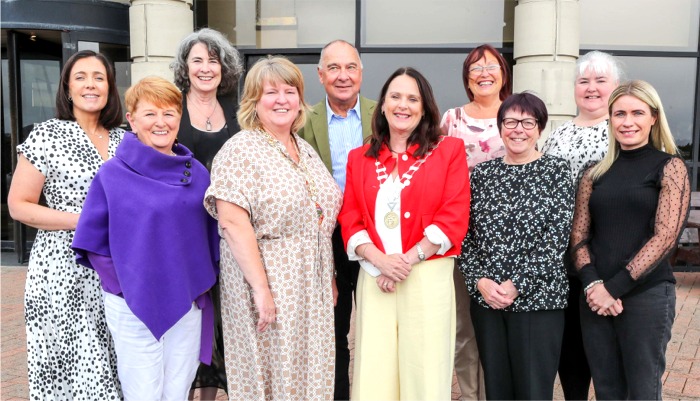 L to R- back row Aine McLaughlin IDP; Denise McCool, IDP; IFI Board Member Bill Pauley; Laura Couser, Breen Centre, Gillian Mitchell participant. Front row L to r- Bridgdin Lyttle, participant; Deputy Mayor of Derry City and Strabane, Alderman Niree McMorris; Cathaoirleach of Donegal County Council, Niamh Kenendy; Adree Wallace, Breen centre and participant Gemma Esdale.