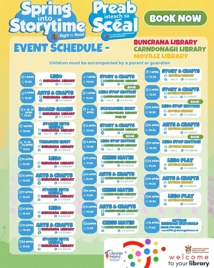 more. Libraries in Buncrana, Carndonagh and Moville will