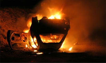 THIS is the scene at the weekend when an overturned car went on fire in Tooban causing a blaze that could be seen for miles. Gardai and firefighters attended the scene of the fire at the Old Tooban Road, Burnfoot, shortly after 1am on Sunday. Gardai are continuing their inquiries in a bid to determine the car's origin and how it came to be burnt out. Anyone with information should contact Buncrana Gardai on 07493 20540. (Photo courtesy Mickey Rooney)