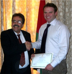 Fiachra Ó Luain accepts his citizenship papers at the Palestinian Embassy in Dublin