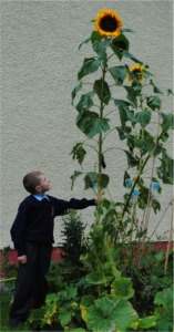 super-tall sunflower. The lofty flower was grown by