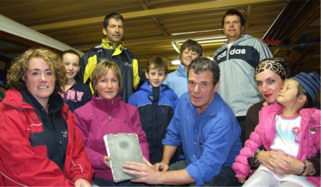 Boston artist, Michael Dowling, seated centre, pictured with members of Moville Rowing Club during a recent workshop as part of the Tuns/Tonnes Project. Included in photo are, from left, Jackie Kelly, Olwyn Kelly, Kate McLaughlin, Hugh Kelly, Cahir Kelly, Kathleen McGonagle, Robert Kelly, Tracy Cullen and her daughter Thi Lana.