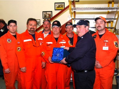 Greencastle Coast Guard officer-in-charge, Charlie Cavanagh presents the Wolverines of Canada with a memento of their trip to take part in the first ever Trans-Atlantic Search and Rescue Games in Greencastle.
