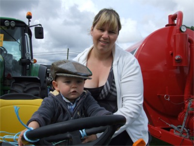 Oisin Robinson, 2, from Kilmacrennan has a go on the big lawnmower watched over by mum Una.