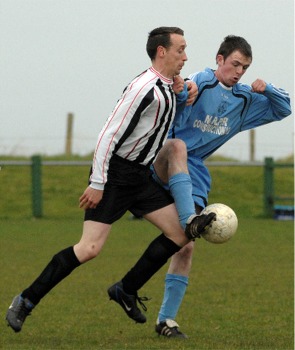 Carrowmena...1 (Gillen 43) Rashenny ...1 (Toland 83) (Aet. Carrowmena won 3-1 on penalties) by Liam Porter, Inishowen Independent Two penalty shoot-out saves from goalkeeper Michael Noone helped Carrowmena through to the next round of the Fr. O’Gara cup against a ten-man Rashenny outfit who had battled back gamely in defence of the cup they had won last year. A strong and swirling wind made conditions for the teams extremely difficult, but the visitors had their hopes hampered even further when midfielder Sean Toland received a second yellow card on the half-hour and was sent for an early shower. In all honesty he was probably lucky to have survived that long, getting only a yellow for an altercation in the 14th minute with Carrowmena’s Jonathan McLaughlin when he might well have seen red. When he tangled again with McLaughlin in the 29th minute he was never going to escape and after that his side would be left with a mountain to climb. |