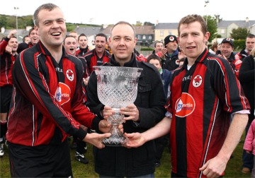 With time running out Clonmany threw everything they had at the visitors but there wasn’t enough consideration to their attacks with many of their efforts going wide or easily into Crossan’s hands. Stephen McLaughlin hit a free kick that pulled hopelessly wide and Raymond McDaid shot straight into Crossan’s hands.