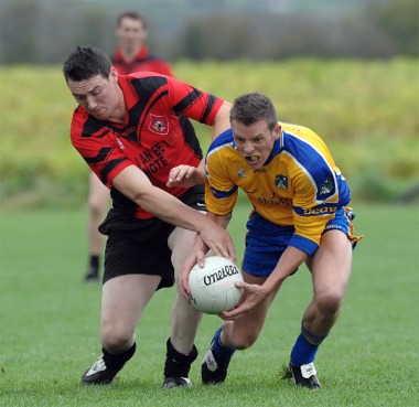 Burt...1-16 (Boyle 0-5(3f), E McDermott 1-2(f), K McDermott 0-3,McCarroll 0-2, P McDermott 0-2(f), McHugh 0-1, Gavigan 0-1) Urris...1-10 (E Kelly 0-6(3f), A Friel 1-1, B Doherty 0-1, P Doherty 0-1, M Kelly 0-1(f)) by Simon McGeady, Inishowen Independent, at Hibernian Park AFTER flirting with the fringes of relegation in recent weeks, back-to-back wins in the league in eight days have propelled Burt to within five points of third placed Urris with a game in hand. Now a strong finish to the season by the Hibernian Park men could even see them qualify for the end of season promotion playoff. Of these two Inishowen rivals, Urris still have the better chance of going up to Division Two alongside runaway leaders Fanad Gaels, but the manner of their defeat to Burt on Sunday will give John Friel and the Urris coaching staff pause as they plan for the final month of the season. Burt dictated the play throughout, excellently disrupting Urris’ attacks and slowing the play down where they could against the breeze in the first half, before unleashing the full force of their forwards after the interval. Early frees from Paddy and Enda McDermott were cancelled out by Eddie Kelly who punished Enda McDermott’s wayward hand-pass then collected Brian Doherty’s lay off to fire over. |