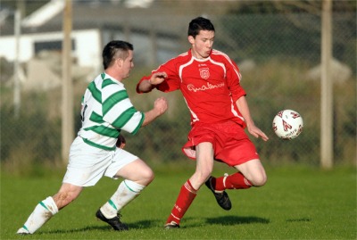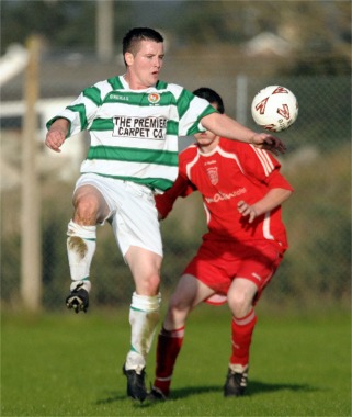 | Dermot Doherty saw him cut inside and fire a shot that was well saved by Leo McColgan. This seemed to spark Carndonagh to life and they began to dominate in the final ten minutes of the half. They managed to make the most of this period when two minutes before the break they took the lead through right winger Liam Doherty who was intelligently played through by Dermot Doherty and able to calmly slot under the body of Leo McColgan. | |