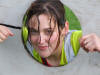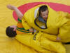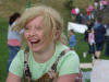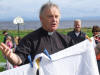 Moville parish priest, Fr Paddy O'Kane delights the crowd in the nappy-hanging competition.