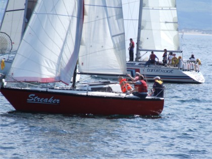 Streaker and crew get more sun than sail.
