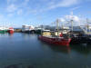 Garda Gerard Treacy and Garda Anne McGreal talk to children from St. Patrick's Boys' School about road safety during the Pedal Right presentation day. Pedal Right founder Mary Kelly oversees the presentation of cycling certs to St. Patrick's N.S., pupils in Carn. Pedal Right founder Mary Kelly, Garda Anne McGreal and teacher John McFeeley with some of the students who received Pedal Right cycling certs. St. Patrick's N.S., teacher John McFeeley, Garda Gerard Treacy and Maria Quinn of Pedal Right at the presentation of cycling certs in Carn. Students from St. Patrick's N.S., Carn and their teacher Deborah McGettigan display their road safety flag donated by PARC recently. Mary Barr from the Donegal Hospice receives a cheque for €276 from the children of Scoil Eoghan in Moville who organised fundraising events under the Glasoige scheme. Helen Davies from the Rainbow Rehoming Shelter for animals receives a cheque for €276 from the children of Scoil Eoghan in Moville. 'Ferry Tale Wedding'...this newly wed bride and groom disembark the Foyle ferry with their party of 30 cars to travel to the Carlton Redcastle Hotel for their reception. Some of the whitefish fleet at Greencastle who tied up recently for a crisis meeting of fishermen in Athlone. The piles drilled into the seabed at Greencastle Harbour to create ten berths for mussel dredgers.