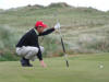 Some of the large crowds who gathered around the 18th green to watch Des Smyth finish as joint leader on Saturday during the Seniors Open in Ballyliffin. Des Smyth and his caddy approach the 18th green at the Old Links, Ballyliffin. Pat McLaughlin and Leo McCauley, members of Greencastle Golf Club, enjoy Saturday's action. Sam Torrance watches his drive on the last hole during Saturday's play in the Seniors Tour. Cecil Doherty caddying for Constantino Rocca during the Irish Seniors Open. John and Anne McDermott, who both play Greencastle, enjoy the Seniors in action at Ballyliffin. Good, Charles and Rocca prepare to tee off. Des Smyth drops a shot at the 17th. John and Paula McGilloway capture some of the action during the Irish Seniors Open. Tomari hits his third shot onto the 18th green.