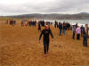 The many hardy souls who turned out for Culdaff's annual New Year's Day charity swim.