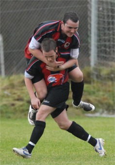 The away side were still dangerous however, and they equalised six minutes before the interval. Patrick Mitchell sent a long ball down the right flank to Patrick Maloney who crossed to Irish junior international Keith Harnett who managed to stab the ball home from close distance.