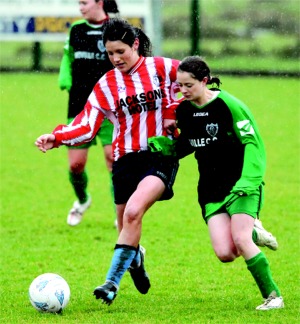 With midfielder Shonagh Kelly in excellent form and pulling the strings in midfield, the Moville girls twice created good chances in the opening five minutes which might have seen them break the deadlock.