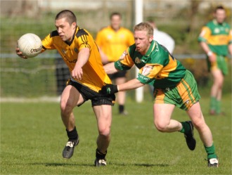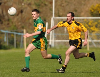 estimated 1,000 strong attendance. Donegal signalled their intent from the start and Michael Doherty knocked over two early points. They raced into an 0-9 to 0-0 lead by the 15th minute with points from Kevin McMenamin, Paddy McConigley, Leo McLoone, David Walsh, Ryan Bradley and two in a minute from full forward Stephen Griffin. Ciaran Dowds and Anthony Kelly did well for the home side at midfield, winning their fair share of ball from Neil Gallagher and Kevin Rafferty, but Inishowen’s link up play was sloppy. And their mistakes were punished heavily by a Donegal side that were more cohesive and fleeter of mind and foot. |