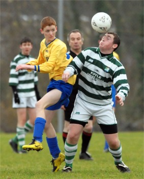 The home side forced a succession of corners at the end of the first half. A goal-bound Conor McLaughlin half-volley was blocked by a yellow shirt and from the resulting kick the same player was inches away from heading Moville’s second.