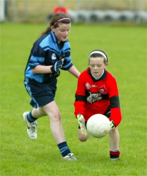Urris cleared their substitutes bench and they all got stuck in and helped the black and reds dominate the closing stages. And it was fitting that the last score of the game should go to the Urris girls. Little Nicole Gordon jinked around several defenders and when her route to goal was finally closed, was clever enough to lay the ball back to Sarah McGonagle who took a fine point.