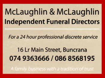 McLaughlin & McLaughlin Funeral Directors 16 Lr Main Street, Buncrana E: joan-mc-laughlin@hotmail.com
