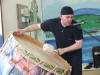 Firefighter John Collins collecting money in Moville as part of the Donegal Fire Service's car wash for the Donegal Hospice.