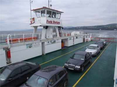Cars heading over on the Lough Foyle ferry to Magilligan from Greencastle.